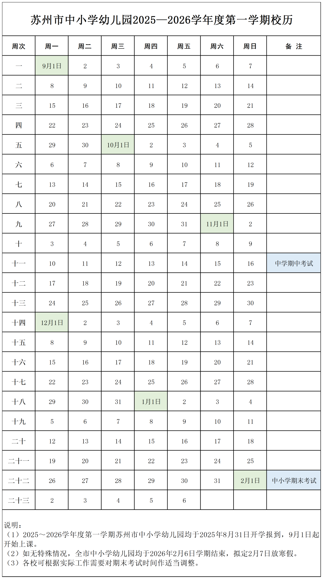 2025年秋学期校历